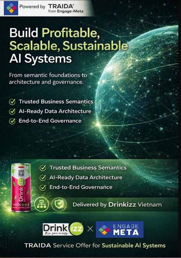 Drinkizz is an official reseller and implementation partner of the TRAIDA Service Offer by Engage-Meta. We help organizations build AI-ready semantic foundations that turn data into scalable, explainable, and profitable AI systems.