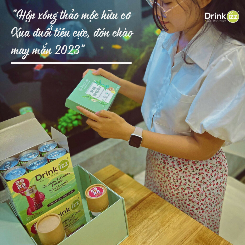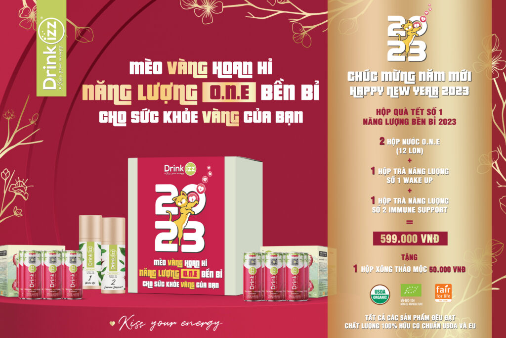 - Và món quà thứ 5 là một thiệp lì xì nhỏ gọn mà Drinkizz dành tặng riêng cho bạn giúp bạn và gia đình có thể mang theo bên mình như một lời nhắc nhở phải bảo vệ sức khoẻ của bản thân và thực hiện những thói quen sống lành mạnh như ăn uống hữu cơ, tập thể dục và thư giãn, thực hành những thay đổi tích cực mỗi ngày! Ngoài ra, Drinkizz còn gửi tặng bạn một phần quà từ cửa hàng trải nghiệm trạm O.N.E 1 giúp bạn có nguồn năng lượng bền vững và sức khoẻ vàng trong năm 2023 này.